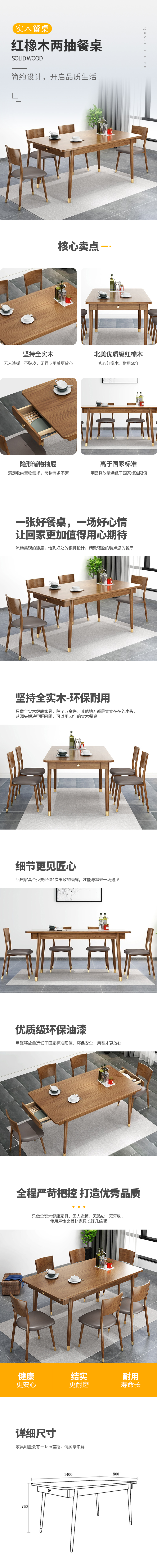 慧乐家(Funature)|桌/椅 ,-慧乐家 红橡木两抽餐桌MLD-ct-02